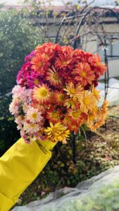 11月6日 風のホールでのコンサートでお花畑にいるような綺麗な空間を感じ、それ以来、お花続きの日々が続いています。庭ではたくさんの菊が花開き、摘み取って部屋に飾っています。