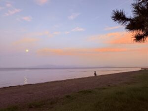 琵琶湖の畔にて