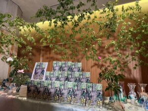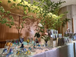 入り口を入ると高句麗の地のお写真と共に野山に咲く花々、上からは色濃い青紅葉が行く道を誘います。目の前には「高句麗伝説」の御本が石垣のひとつひとつとなり城壁がつくられ高麗水やマーブンリングの皮や布のバックたちも石垣のひとつひとつとなり、魂の出会いを待っています。まるで五女山城の城壁が目の前に広がり、森の中にいる不思議な体感です。とても楽しいエントランスにワクワクします。本日の「麗花から高句麗伝説」の経験は、麗花さんの言葉の一言一言が体の中に入ってきます。自分の中にある言葉にはできない感情や感覚が言葉で表現してくださることで認識でき解放されます。10代の高麗恵子さんがいだきしん先生と出会い、資質を生かし、世界のために羽ばたく人生へと大転換する流れを体感すると、自分の中にも高麗恵子さんの存在が一本の道、縦軸となりいだきしん先生の存在と繋がっている道をみます。アルメニアでの高句麗伝説を上映でありながら生の経験をします。初めて言葉とし表現されたとお聞きする「宇宙の生まれる3段階前」の世界を体で経験すると、この世界をいだきしん先生が表現し創出してくださる空間が内面にあり世界に広がります。今の世界の状況を解決するのは別次元、新しい次元を創出し生き延びるよりないこと、いだきしん先生の存在が唯一の解決であることを理解します。「高麗恵子 詩と語り」では、大スクリーンに五女山城の城壁が映し出され圧巻です。登場しされた高麗恵子さんは、ご自身自ら染められたマーブンリングのお着物で登場されました。透明感あふれるお召し物と高麗恵子さんがひとつに溶け合い、透明な水色の光を放ち、別次元から現れた天の人です。迎賓館でのいだきしん先生の演奏とお聞きする「朱蒙」様を表現された音源と共に語られる高句麗、五女山城の暮らし。何もないところから、つくり続けるエネルギーを体感します。具体的に朱蒙さまと一緒に五女山城で畑を耕し、日々の生活を共にする体感に、朱蒙さまの明るく気さくで大きく暖かいお人柄を感じます。この方といっしょだから何でもできる、愛のエネルギーを全身に受けます。いだきしん先生の存在とも重なり、愛の五女山城で暮らす幸せ。国づくりの原点、愛を経験します。ありがとうございます。