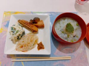 薬膳粥とぜんざい、魂コーヒーのセットをいただきました。