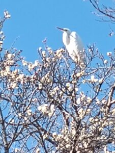 先日 若光王墓にご挨拶に行きました。若光王墓横の紅梅 蝋梅が咲いていました。若光王墓前の白梅も咲いていました。白梅の木は、大きかったので下から見上げていると、青空の中に大きな翼が舞い降りました。純白の大きな鳥でした。私の頭上の枝にとまりました。周りにいた観光客は「きれい。きれい。」とさけんでいましたが、声で逃げることなく、20分以上、頂上の枝に堂々といました。私が帰る時も見送ってくれているようでした。大きな鳥は美しいかったです。先生 高麗さんに出会え、コンサート等で美しい経験をたくさんさせていただきました。ありがとうございます。